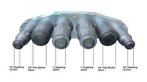 Anschlüsse am Verteilerblock: 4x 3/4" BSP 2x 1" BP