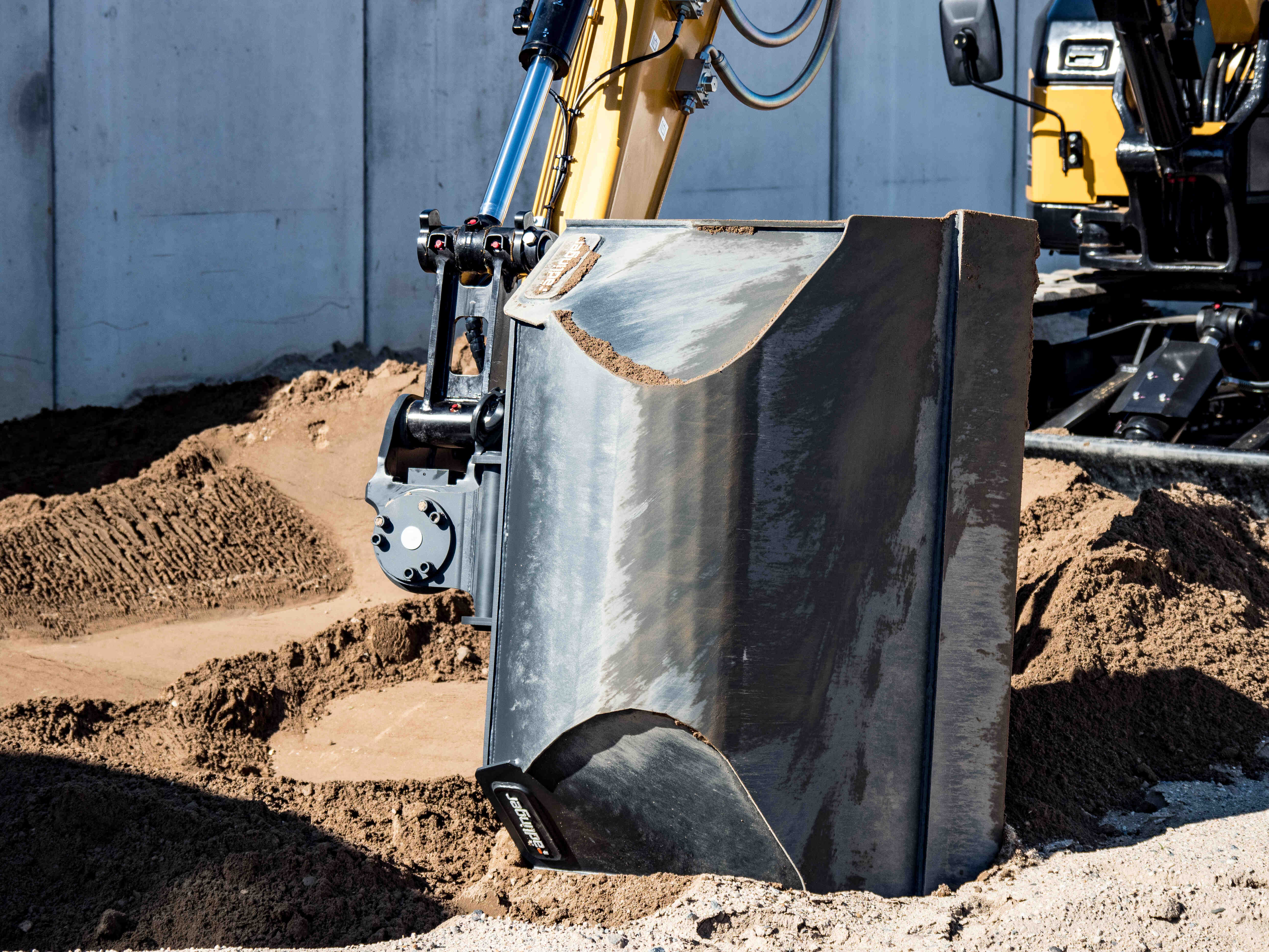 Der Planierlöffel verfügt über Transporthaken.
